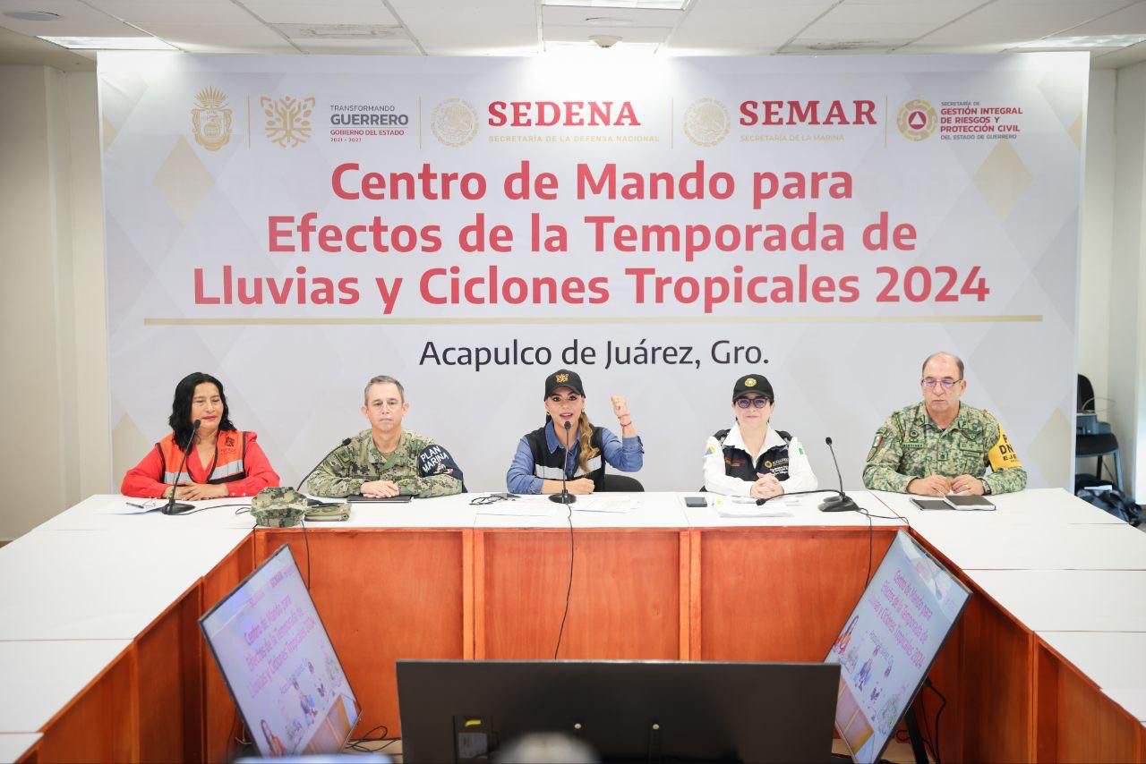 Con la presencia de la coordinadora nacional de Protección Civil, Laura Velázquez Alzúa, la mandataria estatal destacó el apoyo de los cuerpos de emergencia que, arriesgando su vida, han realizado labores día y noche para rescatar a las personas. Tal es el caso de tres personas que fueron rescatadas vía aérea en el Río Huacapa; cinco familias que fueron evacuadas mediante una tirolesa en la comunidad de Las Ramaditas tras el socavón que se presentó en San José del Río, en la Costa Chica y el operativo permanente en Acapulco, en el que participan 33 motos acuáticas, lanchas, un catamarán, así como personal.