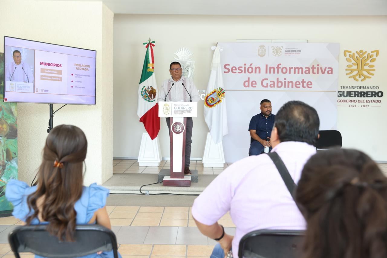 Chilpancingo, Gro., 08 de mayo de 2025.- En la ruta de continuar con el acercamiento hacia la población y a fin de informar sobre las acciones gubernamentales que se emprenden en favor de las y los guerrerenses de las ocho regiones del estado, durante la Sesión Informativa de Gabinete realizada este jueves, los titulares de la Secretaría de Agricultura, Ganadería, Pesca y Desarrollo Rural (SAGADEGRO), Alejandro Zepeda Castorena y del secretario técnico del Consejo Estatal de Población, Felipe Ortiz Cuevas, dieron a conocer los trabajos que se realizan en sus respectivas áreas, así como las inversiones y acciones que se ejecutan en este 2025.