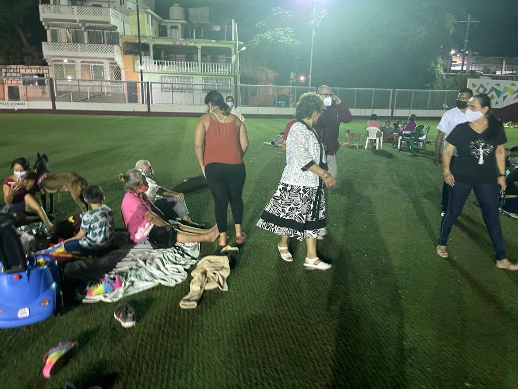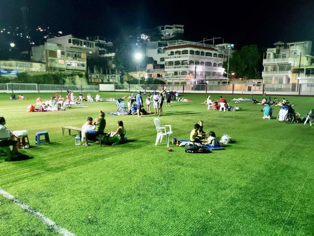 Acapulco, Gro., 08 de septiembre de 2021.- Ante las réplicas ocurridas tras el sismo magnitud 7.1, la presidenta municipal Adela Román Ocampo habilitó espacios deportivos como albergues a cielo abierto.