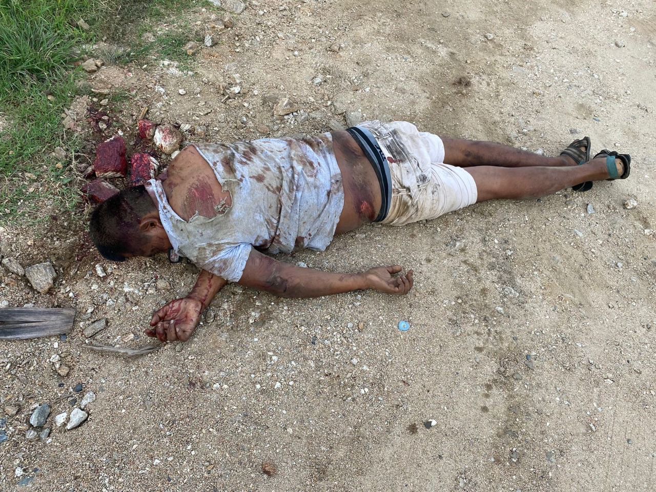 Las autoridades informaron que la víctima, un hombre de unos 34 años, presuntamente fue asesinado a pedradas, tenía golpes en el cuerpo ; vestía un short blanco con una playera gris y tenía una placa tipo militar, esto se indicó en el reporte policial.