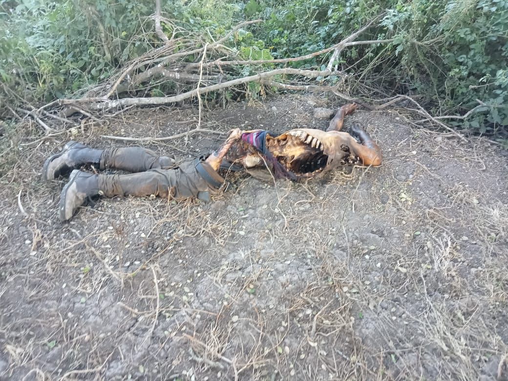 De acuerdo con información de las autoridades, el cadáver fue encontrado debajo de un árbol, en estado de descomposición con señas de haber sido devorado por la fauna silvestre; vestía un pantalón negro, con botas negras.