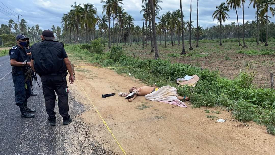 Coyuca de Benitez, Gro., a 04 de agosto del 2021.- El hallazgo se realizó hacia las 08:00 horas, de acuerdo con el reporte al 911 de Emergencias que alertó de un cuerpo inerte y semi desnudo al lado de vía, muy cerca de la carretera federal Acapulco-Zihuatanejo.