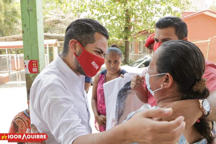 Acapulco Gro., 29 de abril del 2021.- El candidato a la presidencia municipal del Partido del Trabajo (PT) Igor Aguirre, se coloca en la segunda posición de las preferencias electorales en este proceso 2021, por debajo de Morena, a un mes de la elección.
