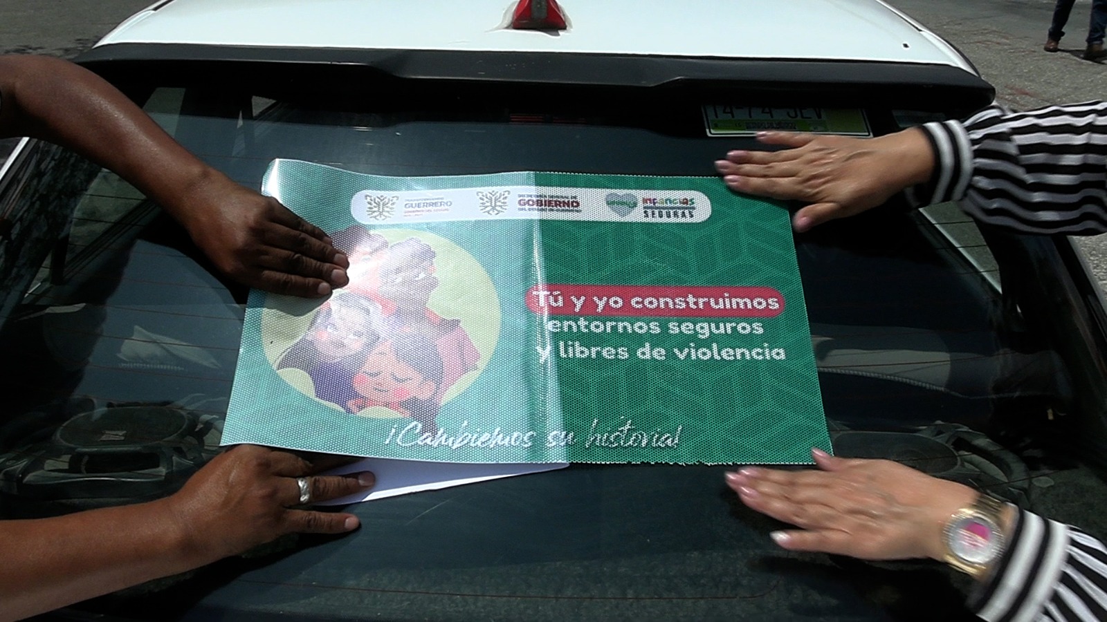 Chilpancingo, Gro., 15 de agosto de 2024. – Con la finalidad de sumar esfuerzos y fortalecer la difusión de la campaña “Infancias Seguras: ¡Por las niñas y los niños de Guerrero!”, impulsada por la gobernadora, Evelyn Salgado Pineda, la Dirección General de Comunicación Social del Gobierno de Guerrero (DGCS), participa con difusión y pega de microperforados en las unidades de transporte público del municipio de Chilpancingo.