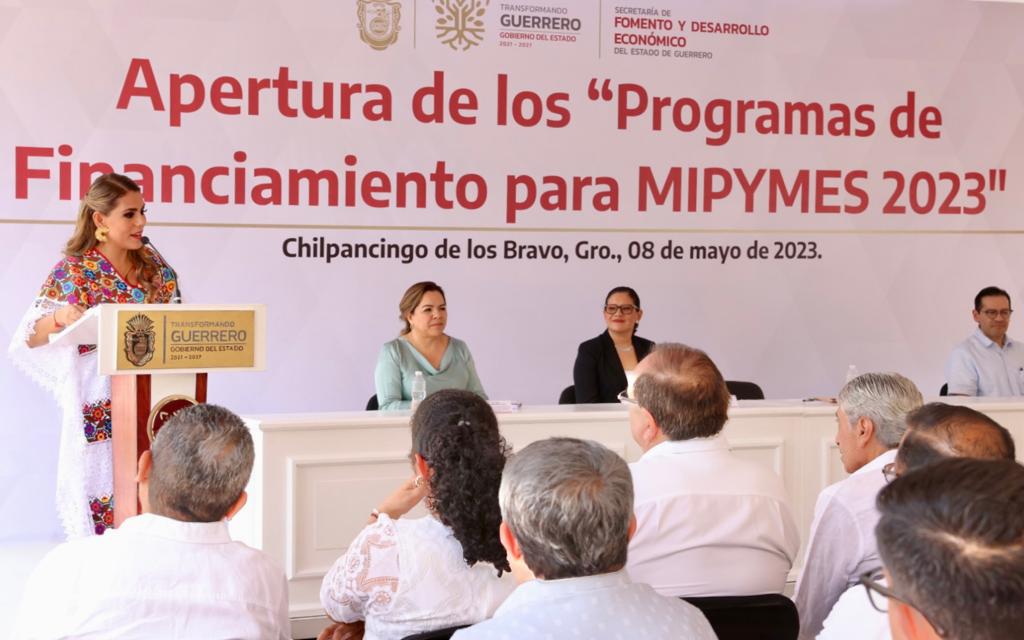 Chilpancingo Gro., 8 de mayo del 2023.- Con el objetivo de seguir impulsando y fomentando el desarrollo económico de Guerrero, con una bolsa de financiamiento de 146 millones de pesos, la gobernadora Evelyn Salgado Pineda puso en operación los programas estratégicos de crédito NAFIN + Guerrero y de Inclusión Financiera para la Población Prioritaria para MIPYES 2023.