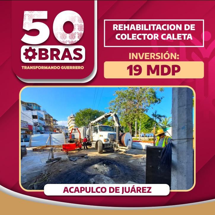 A través de una inversión de más de 17 millones de pesos, se trabaja en la rehabilitación del colector sanitario Sonora, mediante acciones estratégicas. Adicionalmente se cuenta con una inversión de poco más de 19 millones de pesos, los cuales son destinados a la rehabilitación del colector Caleta.