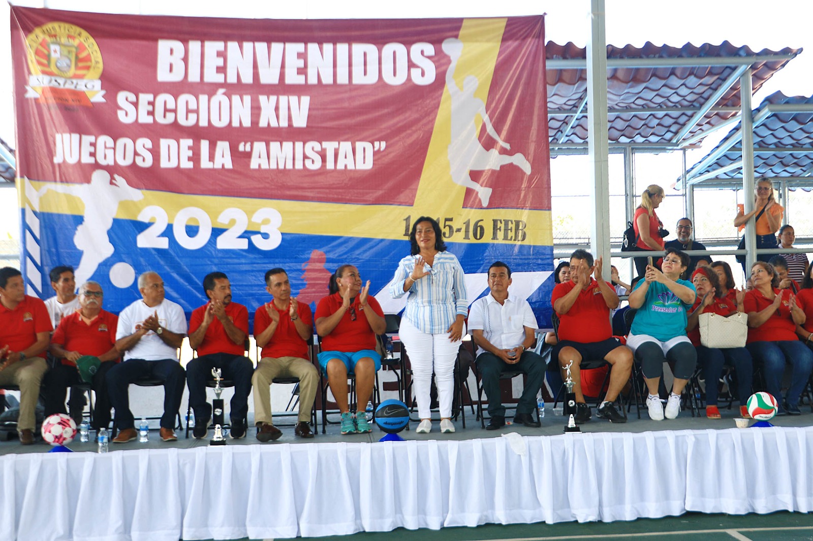 Los “Juegos de la Amistad” de la sección XIV del SUSPEG magisterio, se desarrollarán en la cancha techada de la Unidad Deportiva “Vicente Suarez”, del 14 al 16 del mes en curso. Durante el evento la alcaldesa, Abelina López, fue la encargada de dar la tradicional patada inaugural.