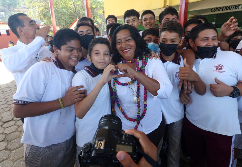En su oportunidad, el director de la institución, Nicandro Guzmán Aguilar, agradeció a la alcaldesa por la realización de la obra: “Para mí es histórico que una autoridad municipal esté en nuestra escuela, licenciada, Abelina, con esta magna obra, todos somos beneficiados porque bajo este techo se promueve la educación, se promueven los saberes de todas las niñas, los niños y los adolescentes de esta escuela, maestra, Abelina, sabemos que usted es una persona de palabra”.