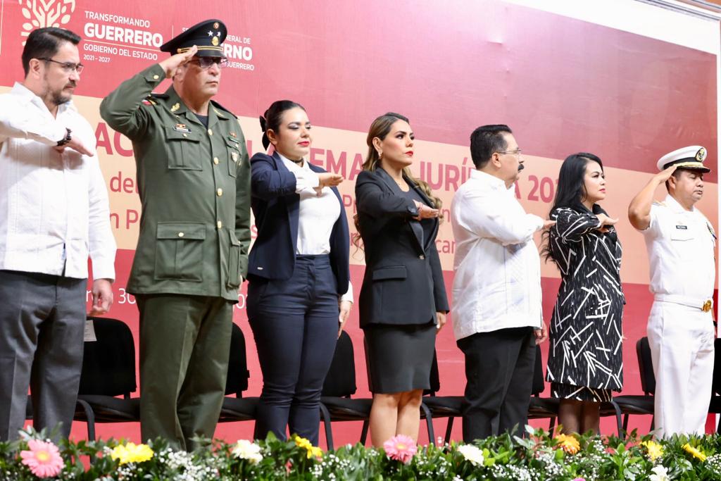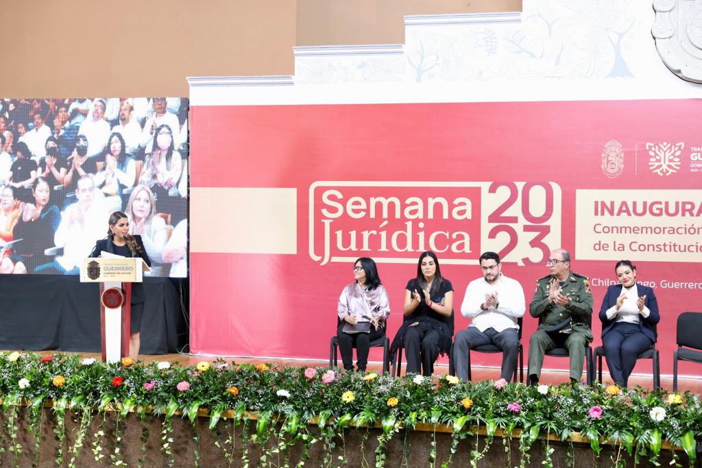 La gobernadora Evelyn Salgado, inauguró la Semana Jurídica 2023 en el Auditorio José Joaquín de Herrera, acompañada por el Presidente del Tribunal Superior de Justicia, Raymundo Casarrubias Vázquez; la Presidenta de la Mesa Directiva del Congreso del Estado, Yanelli Hernández Martínez; la Alcaldesa de Chilpancingo, Norma Otilia Hernández Martínez; la Presidenta del Sistema DIF Guerrero, Liz Salgado Pineda, así como mandos militares navales y civiles, en el preámbulo del 106 Aniversario de la Promulgación de la Constitución Política de los Estados Unidos Mexicanos.