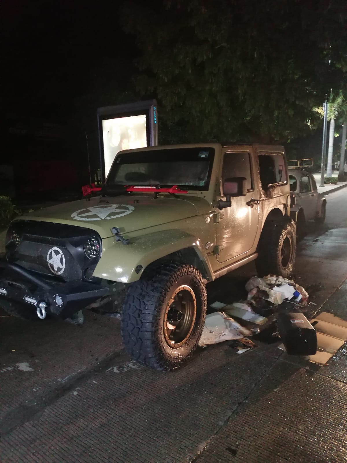 De acuerdo con información de las autoridades, el vehículo tipo Jeep de color verde, el cual quedó a orilla de la avenida.