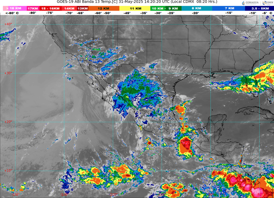 Finalmente, el reporte matutino del Servicio Meteorológico Nacional (SMN), informa, que Canales de baja presión sobre el centro y sureste del territorio mexicano, en combinación con inestabilidad atmosférica y el ingreso de humedad del océano Pacífico y golfo de México, originarán lluvias fuertes a puntuales muy fuertes acompañadas con descargas eléctricas y posibles granizadas en el centro, oriente, sur y sureste del país, incluido el Valle de México.