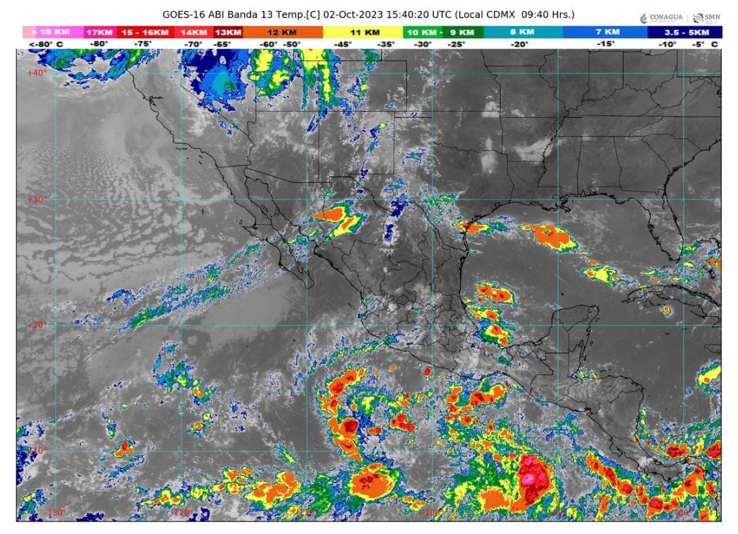 En su reporte matutino, el Servicio Meteorológico Nacional (SMN) indica que la zona de baja presión incrementó a 90 por ciento su probabilidad para formar un ciclón tropical en 48 horas. Se encuentra a 800 kilómetros al sursuroeste de Zihuatanejo, Guerrero y se desplaza hacia el oestenoroeste.