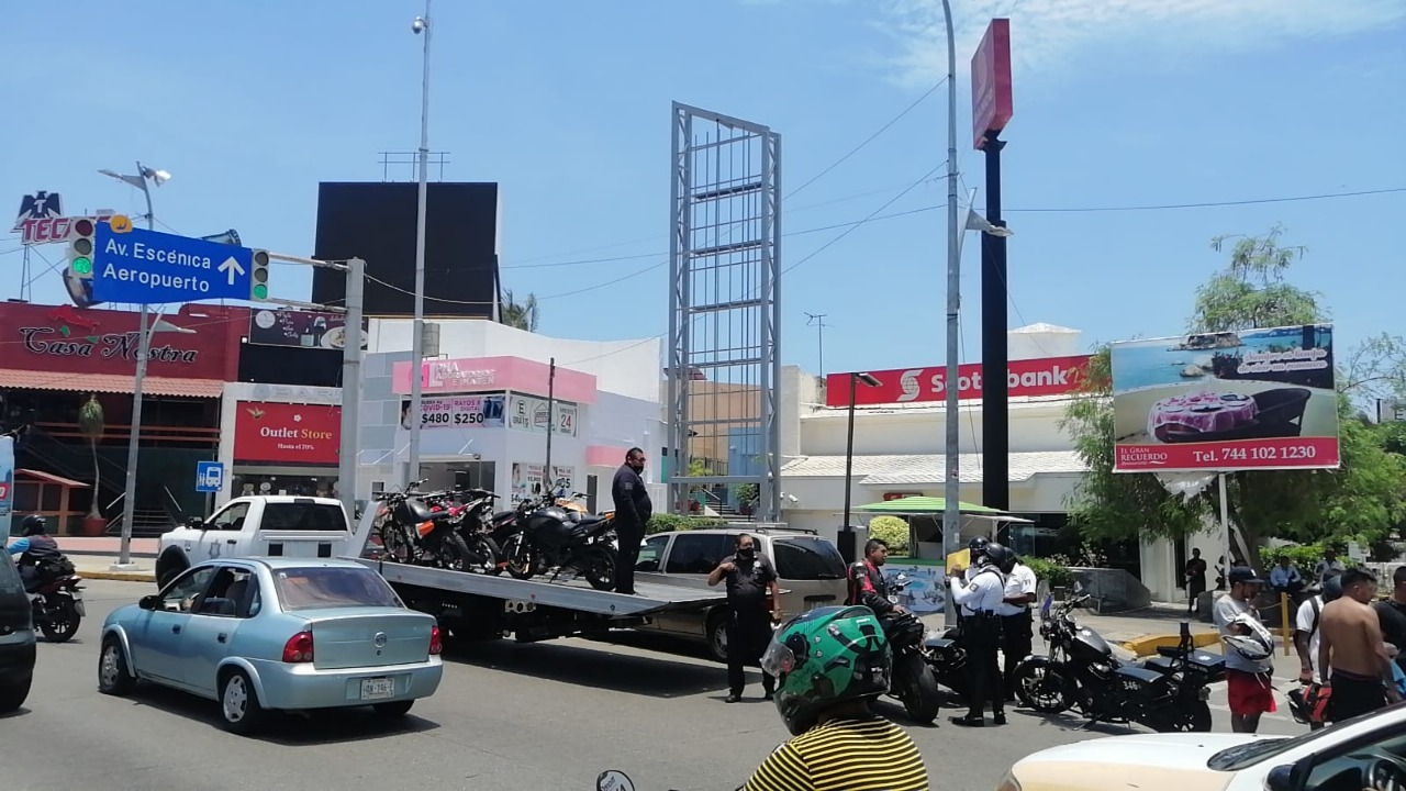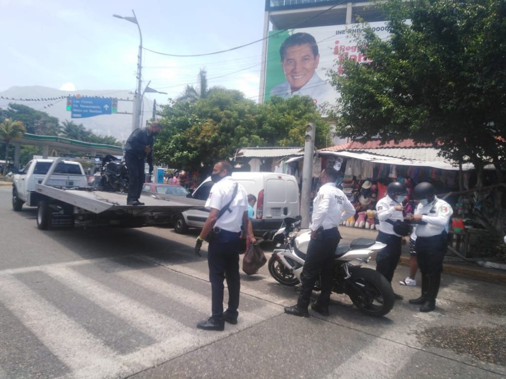 Acapulco, Gro., 14 de mayo de 2021.- Un total de diez motocicletas infraccionadas por diferentes motivos, fue el saldo de este viernes, a integrantes de clubes que acuden al puerto de Acapulco, a pesar de que este año las autoridades suspendieran llevar a cabo el Aca Moto 2021.