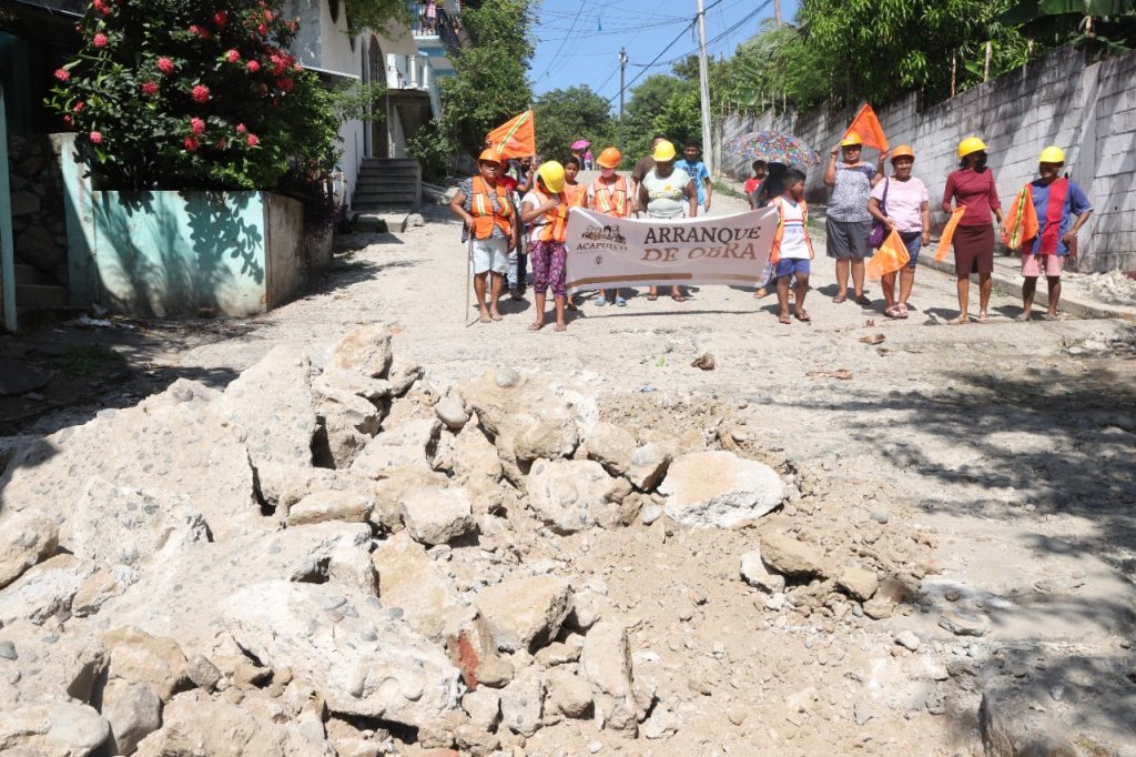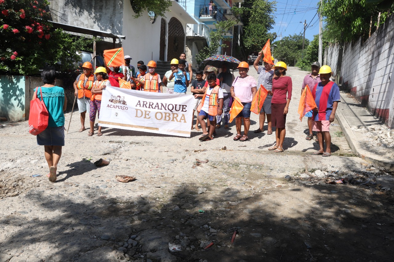 Acapulco, Gro., 18 de agosto de 2022.- Vecinos de la colonia Mártires de Cuilapa, en el poblado de La Sabana, dieron el banderazo a la pavimentación de 50 metros cuadrados de la calle Vicente Guerrero, donde también se realizará la rehabilitación de agua potable y drenaje sanitario.