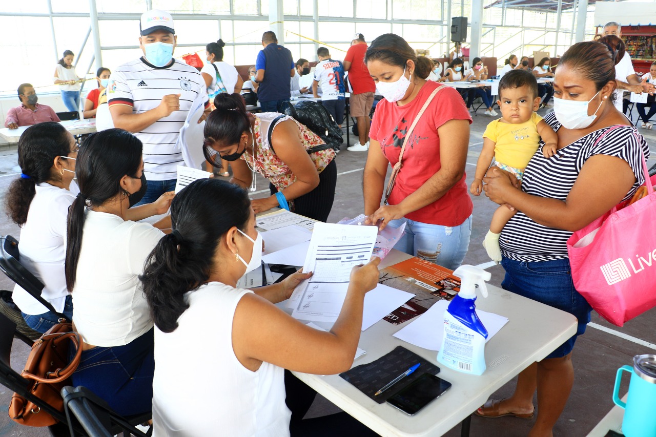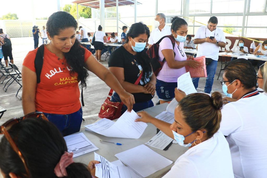 Al interior de la Unidad Deportiva Vicente Suárez, desde temprana hora, madres y padres de familia se dieron cita para obtener una ficha y entregar la documentación, a fin de que sus hijos o hijas que cursan de tercero a sexto año de primaria, puedan ser candidatos a dicho beneficio.