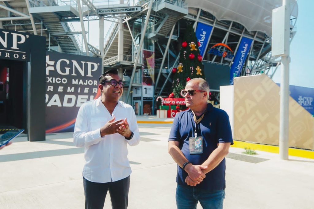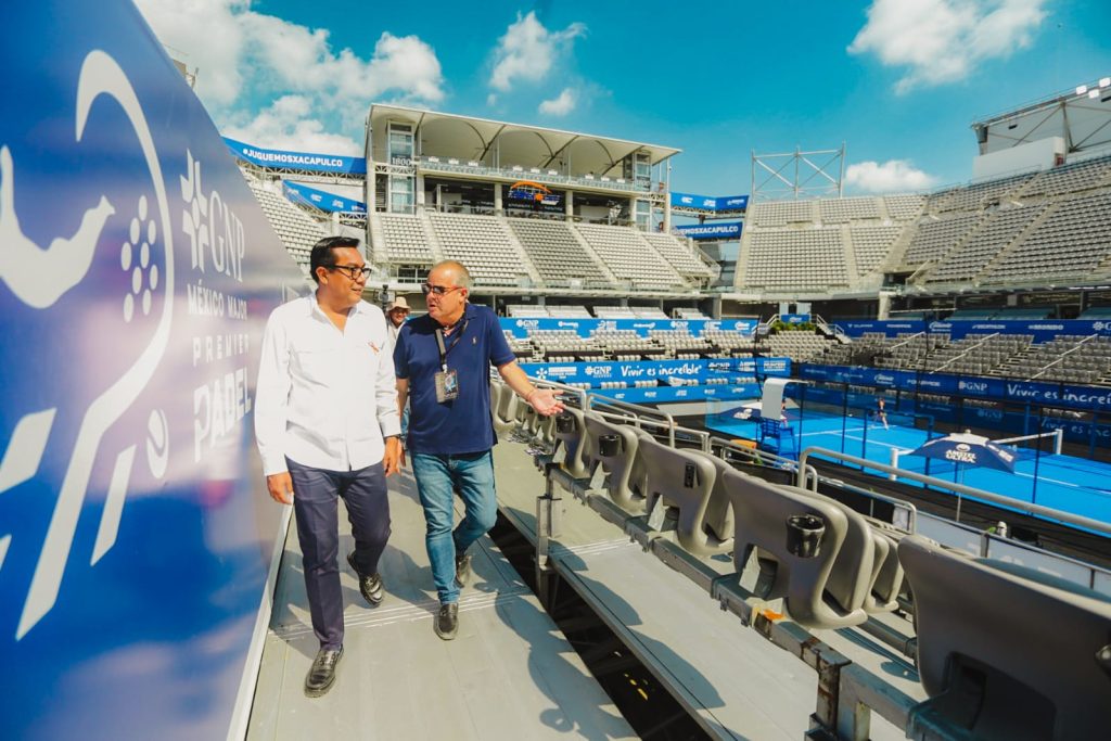 El secretario de Turismo Estatal, Simón Quiñones Orozco y el presidente de la Federación Mexicana del Padel, Jorge Mañé Rendón, encabezaron un recorrido por la Arena GNP Seguros Acapulco, sede del torneo que tendrá exposición televisiva en 219 países con más de 180 millones de telespectadores.