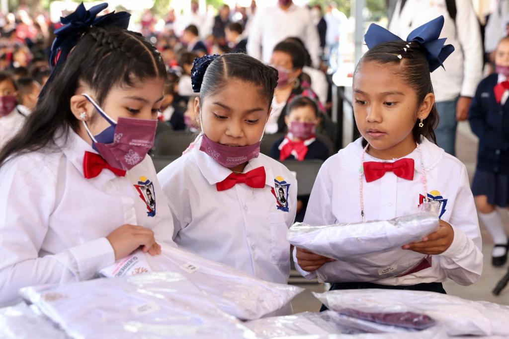 Dijo que la entrega de uniformes para este regreso a clases después del período vacacional de invierno, en su primera etapa, con una inversión de 83 millones de pesos comprende la entrega de 3 mil 31 kits para la atención de escuelas de las regiones Centro, Montaña alta y baja, región Norte y Tierra Caliente, que se suman a los más de 600 mil uniformes escolares que beneficia a igual número de estudiantes de primaria y secundaria de más de 11 mil escuelas en la entidad, con una inversión total de más de 160 millones de pesos.