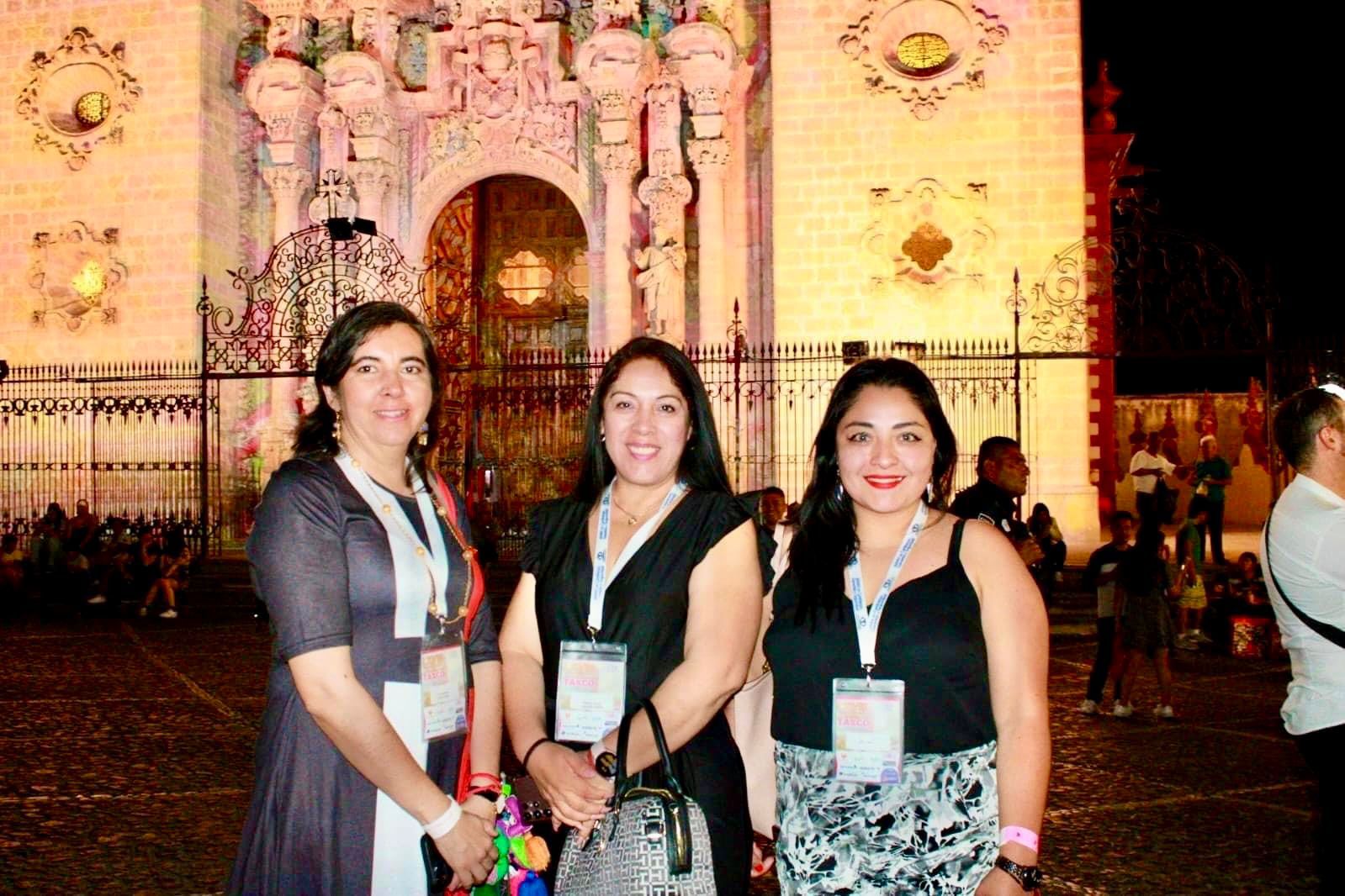 Fueron recibidos en la plaza principal, por autoridades estatales y municipales quienes emitieron un cálido mensaje de bienvenida y les presentaron uno de los atractivos de Taxco, la proyección del video mapping con temática “Semana Santa” sobre la Parroquia de Santa Prisca y San Sebastián.