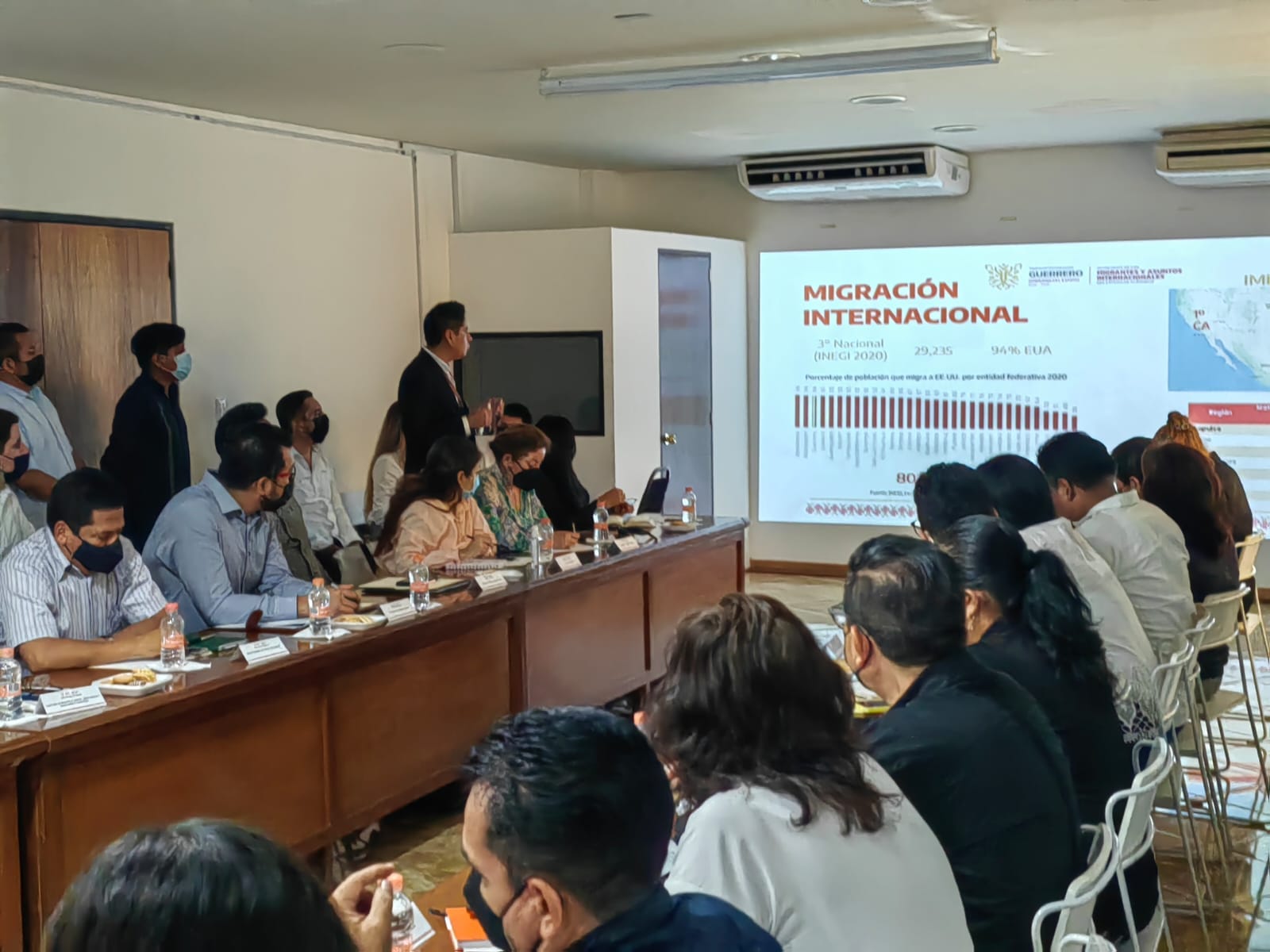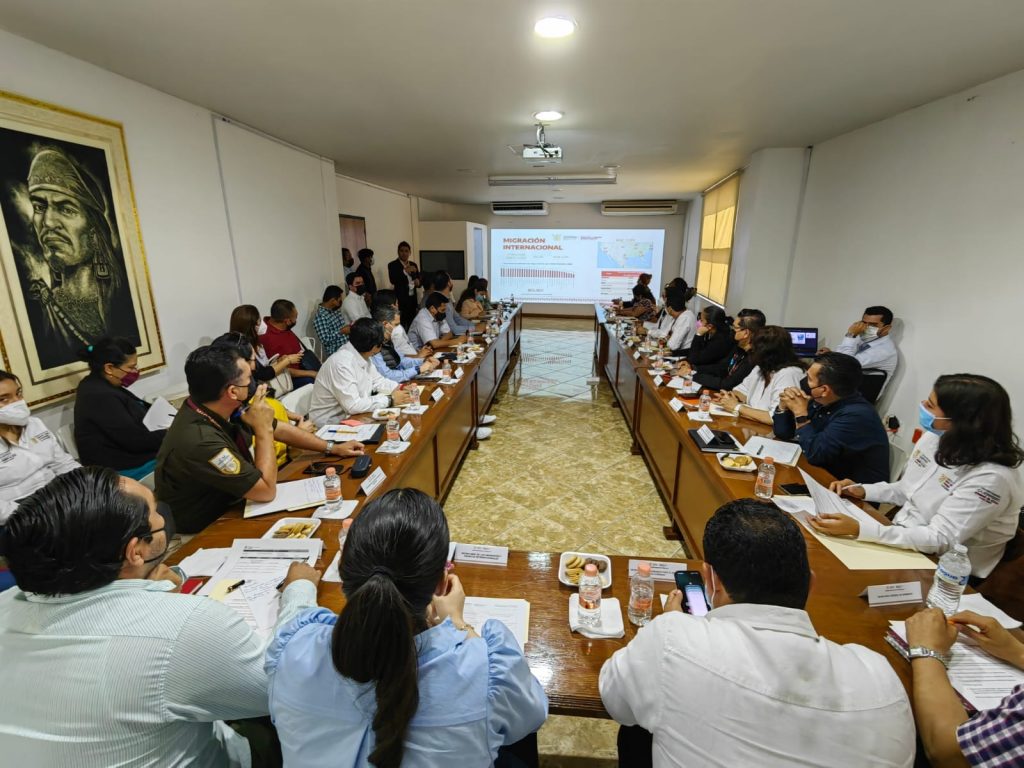 Chilpancingo, Gro., 01 de julio del 2022.- La titular de la Secretaría de los Migrantes y Asuntos Internacionales (SEMAI), Celeste Mora Eguiluz, acompañada del delegado de Programas para el Desarrollo en Guerrero, Iván Hernández Díaz, encabezaron la Primera Reunión Ordinaria del Subcomité Especial del Migrante, cuyo objetivo es la integración de programas y políticas públicas en torno al fenómeno migratorio y asuntos internacionales, siguiendo los lineamientos del Copladeg.