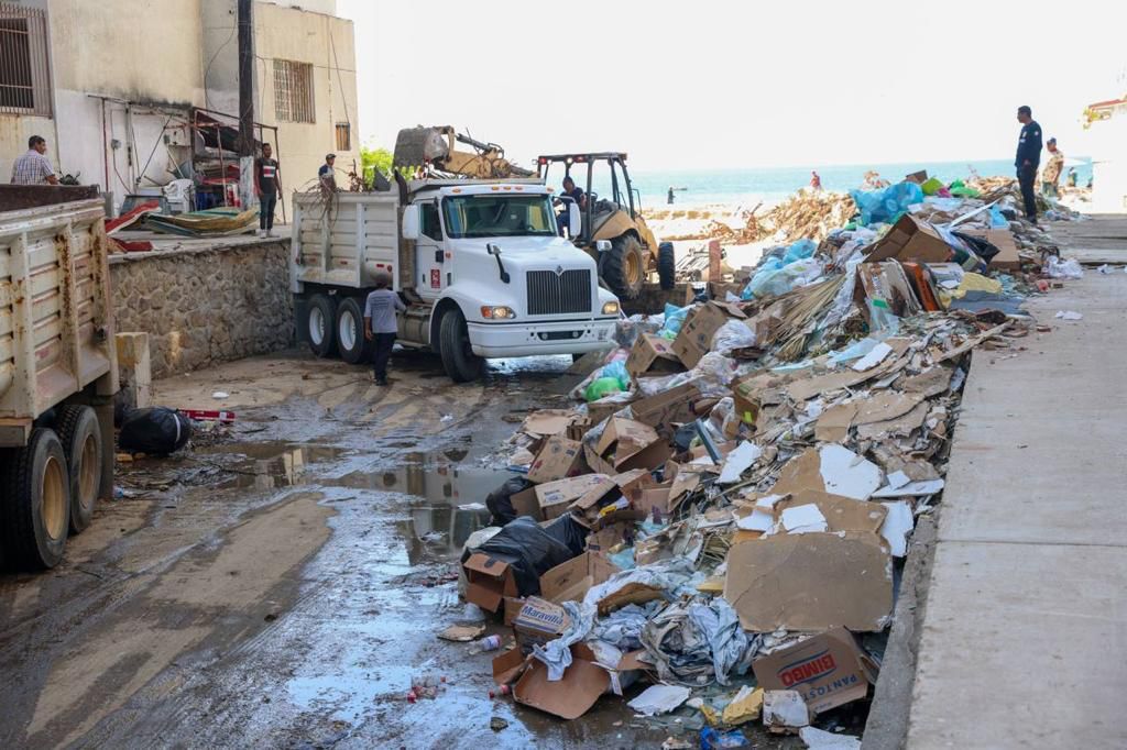 Explicó que se trata de un trabajo integral, que abarca la Costera Miguel Alemán, así como todas y cada una de las colonias del puerto que desde el primer día del impacto de Otis se atienden en su saneamiento; para ello instruyó que en esta primera etapa más de 500 personas integradas en 10 brigadas, redoblen la limpieza de todas las zonas que lo requieran, con el apoyo de camiones y maquinaria pesada, así como herramientas que se estarán duplicando en los siguientes días.