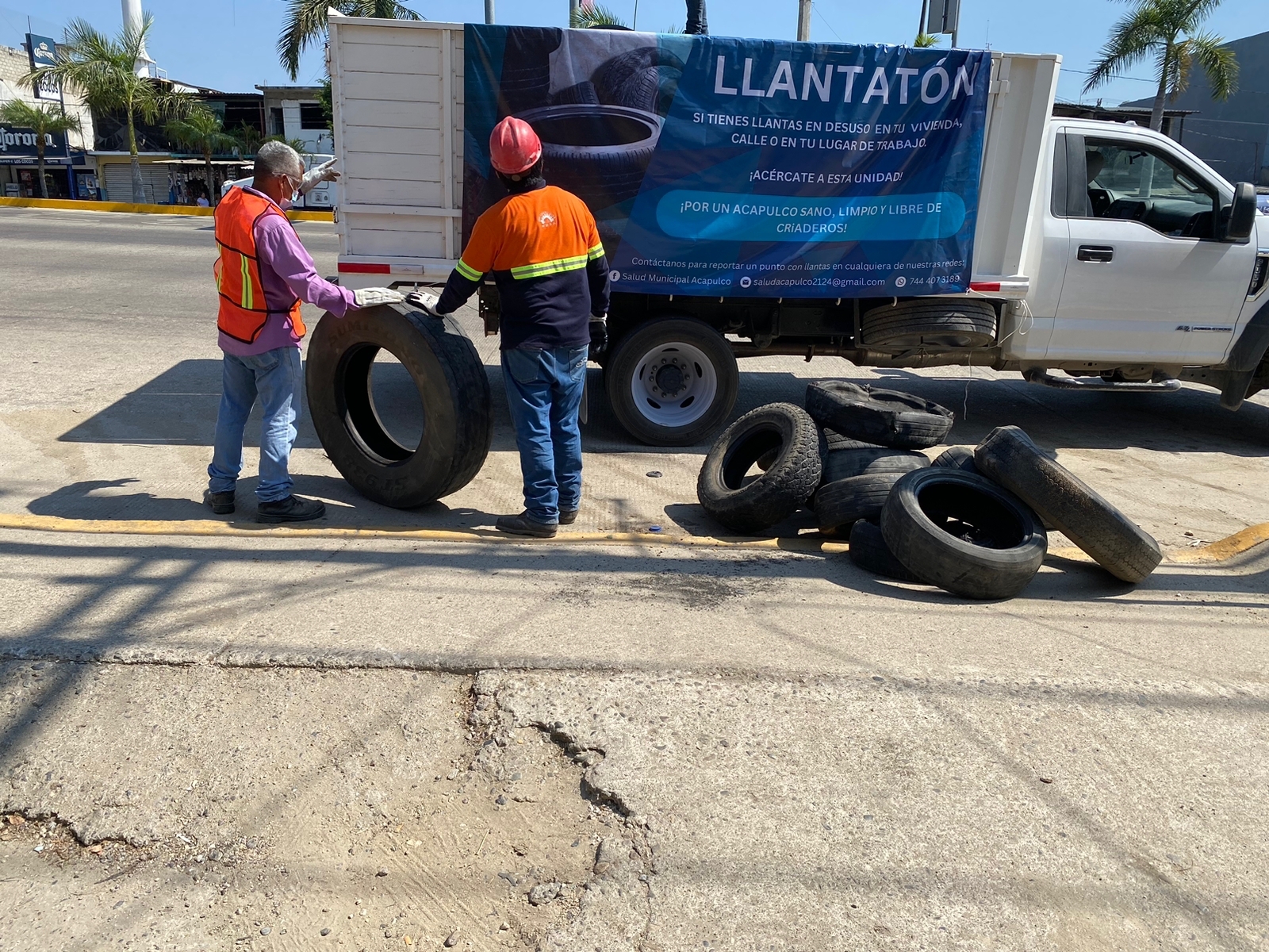 Acapulco, Gro., 26 de enero de 2023.- Para prevenir la proliferación del mosquito trasmisor del dengue Aedes aegypti y concientizar a la población sobre la protección al medio ambiente, el Gobierno Municipal, en coordinación con la Fundación Holcim México y Geocycle, pusieron en marcha el programa “Llantatón 2023”.