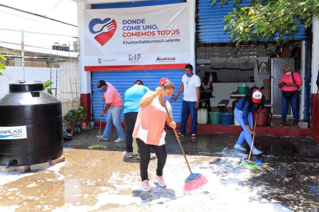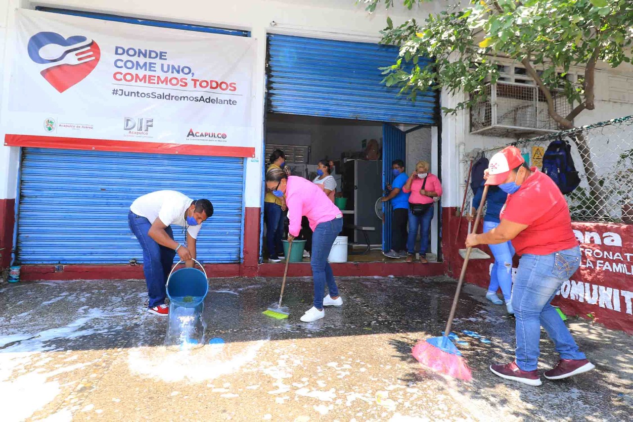Cadena Saligán reiteró que la limpieza se realiza de manera programada en cada una de las 35 Cocinas Comunitarias instaladas por el Gobierno de Acapulco y operadas por el DIF municipal, donde se promueven responsablemente las medidas preventivas, como son: el uso adecuado de cubrebocas, la aplicación de gel antibacterial y guardar la sana distancia.