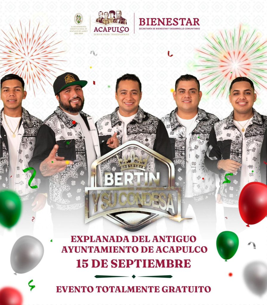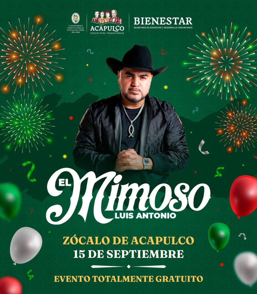 Para celebrar la fiesta mexicana, este 15 de septiembre habrá una gran noche en el Zócalo de Acapulco, con música regional mediante la presentación del cantante grupero Luis Antonio “El Mimoso” en el Malecón y con el grupo musical “Bertín Gómez y su condesa” en la explanada del Antiguo Ayuntamiento; este evento es gratuito.