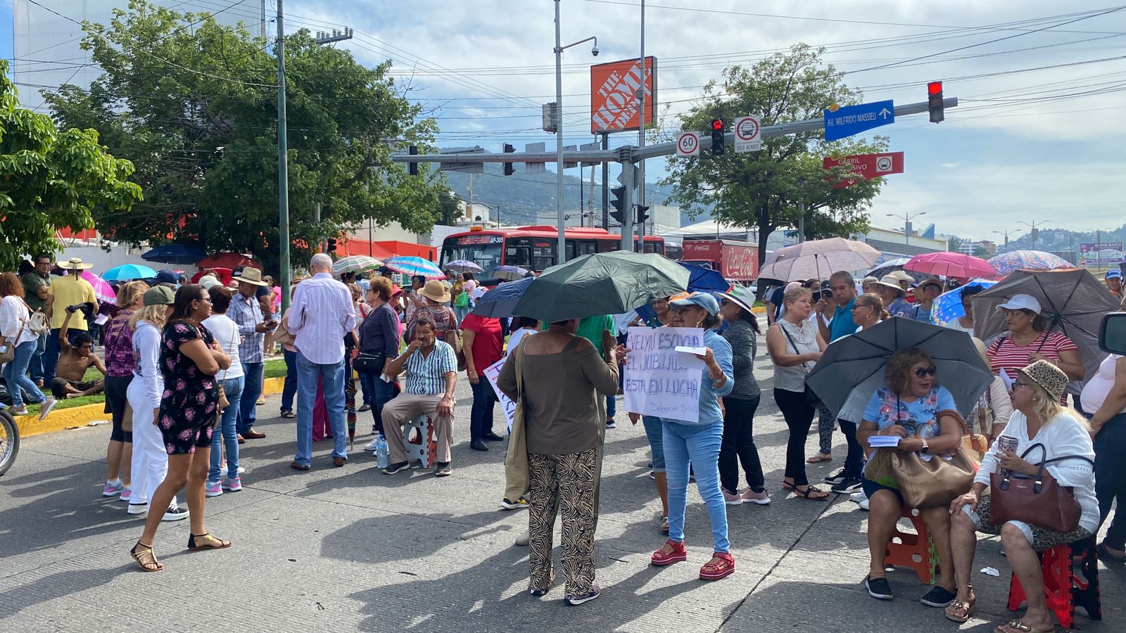 Acapulco,Gro., a 26 de junio del 2023.-Maestros adheridos al Sindicato Nacional de Trabajadores de la Educación (SNTE) realizaron dos bloqueos, uno sobre la avenida Cuauhtémoc y otro sobre la Costera Miguel Alemán a la altura del asta bandera para exigir se resuelvan las demandas que ha generado afectaciones en los profesores jubilados.