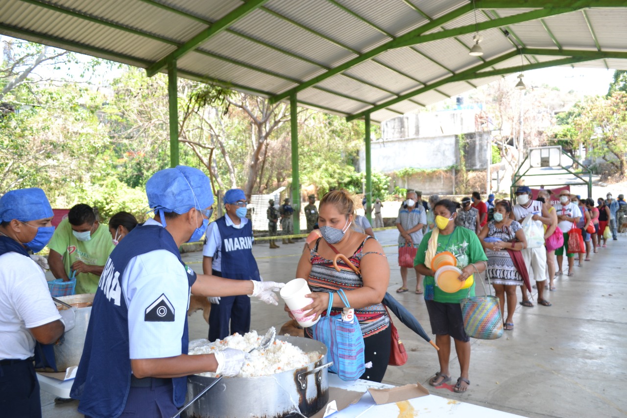 Acapulco, Gro.- La Secretaría de Marina-Armada de México como Autoridad Marítima Nacional y en funciones de Guardia Costera, informa que en el marco del Plan Marina por la contingencia sanitaria de COVID-19 y en relación al pase a la Fase 3 en el Estado de Guerrero del Plan de Acción por Riesgo Máximo de Contagio; hoy, personal adscrito a la Octava Región Naval implementó una segunda Cocina Comunitaria en la colonia Coloso en el puerto de Acapulco, Guerrero.