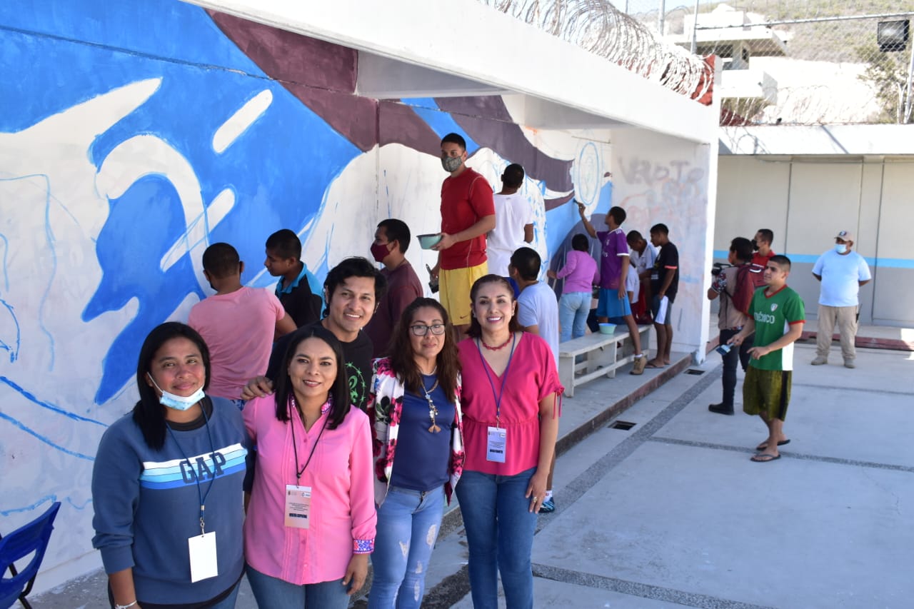 Acapulco,Gro., a 31 de enero del 2023.- En el Centro de Ejecución de Medidas para Adolescentes, las diputadas Beatriz Mojica Morga y Nora Yanek Velázquez Martínez, presidenta y vocal de la Comisión de las Niñas, Niños y Adolescentes del Congreso del Estado, atestiguaron el inicio de un mural que plasma ideas y el sentir de los menores que se encuentran cumpliendo sentencias.