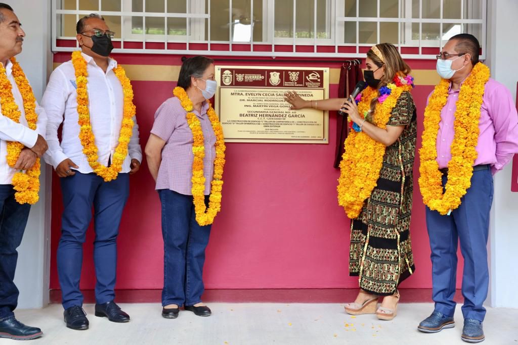 Esta obra de Infraestructura educativa fue concluida y entregada a la comunidad estudiantil en un tiempo de seis meses, luego de que en diciembre la gobernadora Evelyn Salgado colocara la primera piedra a través del Instituto Guerrerense de Infraestructura Física y Educativa (IGIFE), con lo cual se brinda un espacio digno y propicio con las herramientas necesarias para el aprendizaje de las y los alumnos.