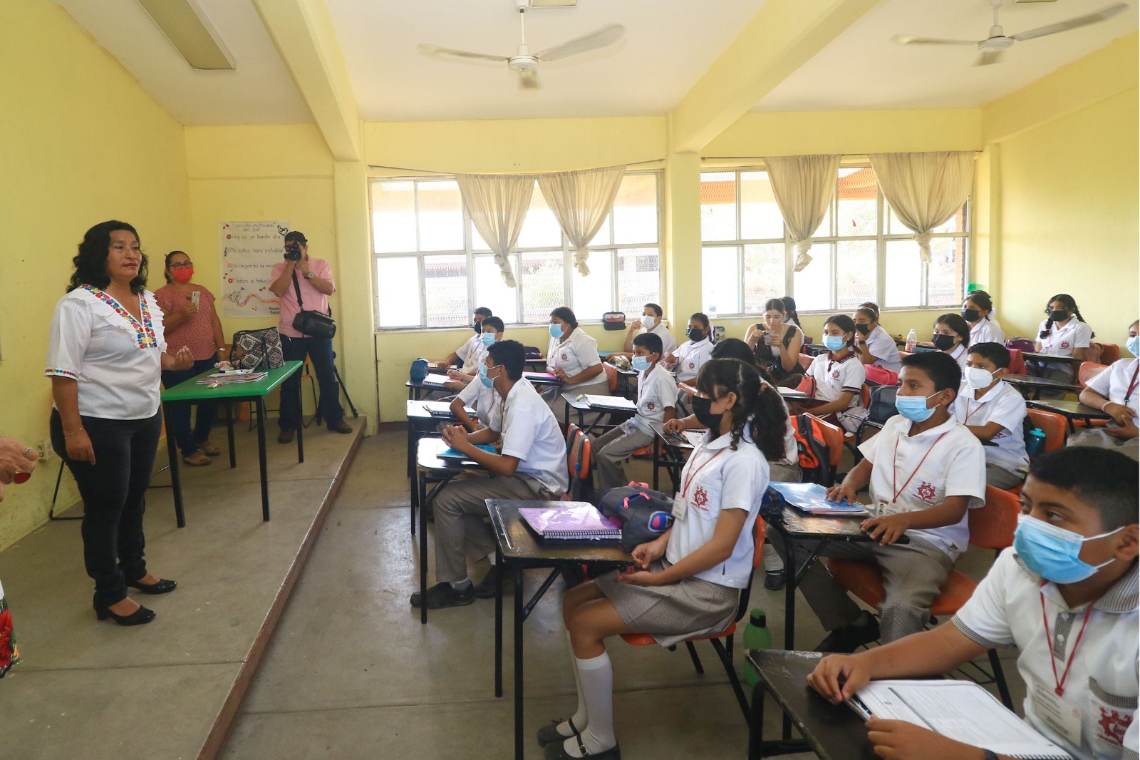 Durante su estancia, Abelina López, sostuvo una plática con alumnos de primer grado, a quienes les compartió cómo vivió su niñez junto a sus padres y hermanos, así como el camino que recorrió para estudiar y convertirse en presidenta municipal de Acapulco. Por lo que conminó a los estudiantes a luchar por sus sueños y lograr sus metas pese a las adversidades que se les presente en la vida.
