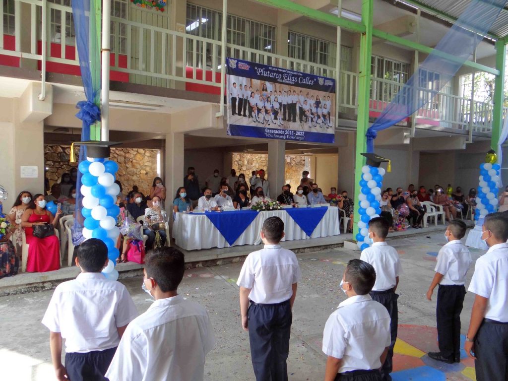 Acapulco, Gro., 21 de julio de 2022.- Durante la ceremonia de clausura generación 2016-2022 “Armando Fierro Vargas” de la escuela primaria, Plutarco Elías Calles, perteneciente a los Barrios Históricos, la secretaria de Bienestar y Desarrollo Comunitario, Leticia Lozano Zavala, exhortó a los egresados a dar continuidad a sus estudios, ponerlos como prioridad y cumplir sus metas.