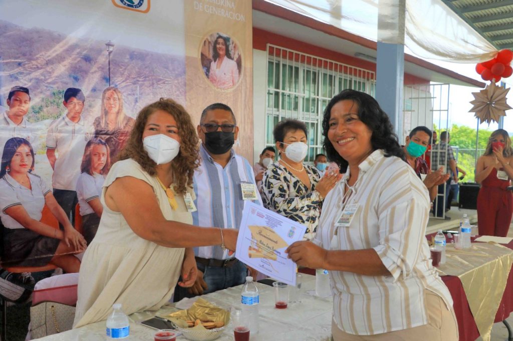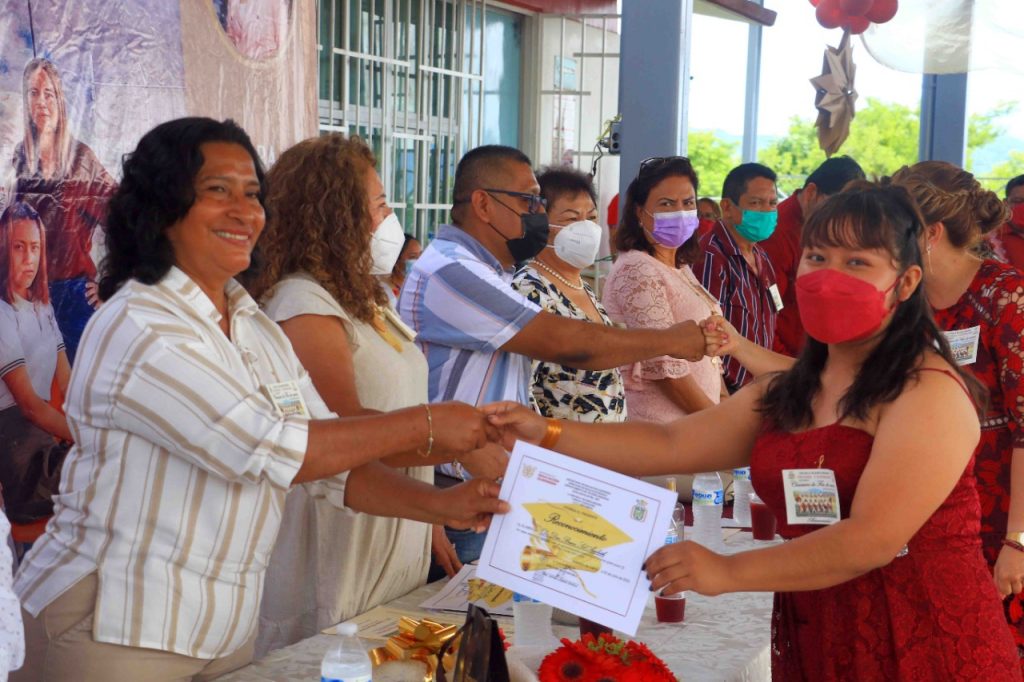 En la ceremonia de clausura, la alcaldesa fue reconocida por la comunidad docente y estudiantil por el apoyo brindado; la presidenta entregó los certificados junto a docentes e invitados especiales, además obsequió un detalle a sus ahijados egresados.