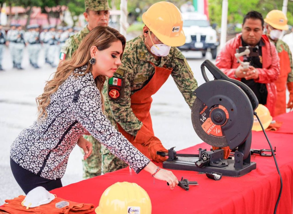 Conforme a lo dispuesto en el artículo 88 de la Ley Federal de Armas de Fuego y Explosivos en vigor, la gobernadora Evelyn Salgado participó en el acto simbólico de destrucción de armas, contribuyendo así a disminuir la violencia y mejorar la seguridad del pueblo guerrerense.