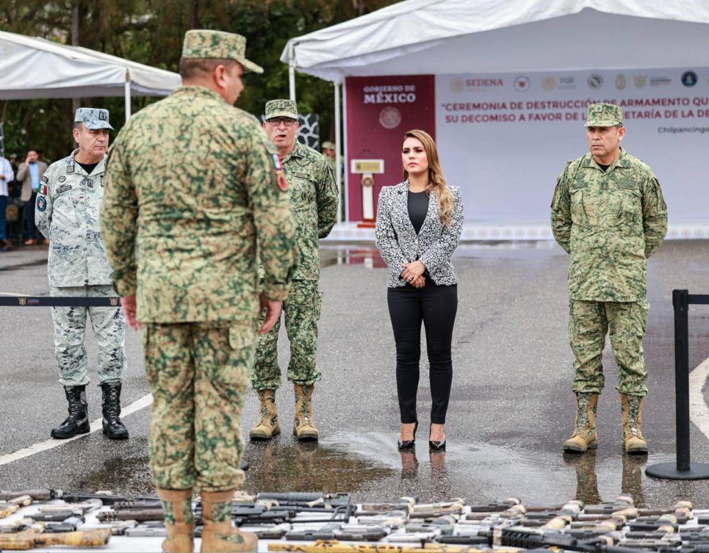 La mandataria estatal destacó que no solo se trata de la destrucción de armamento, sino de la convicción absoluta y el compromiso del Gobierno de México con la paz y la justicia para todos los guerrerenses; un compromiso que se reafirma diariamente desde la Mesa de Coordinación para la Construcción de la Paz.