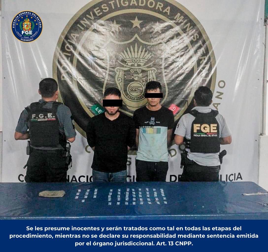 Las operaciones permanentes en las que coadyuvan autoridades de procuración de justicia y seguridad, permitieron que agentes de la Policía Investigadora Ministerial (PIM) de la FGE Guerrero capturaran a Francisco “N”, alias “El Panchito” y Uriel “N”, a quienes se les aseguró lo siguiente: