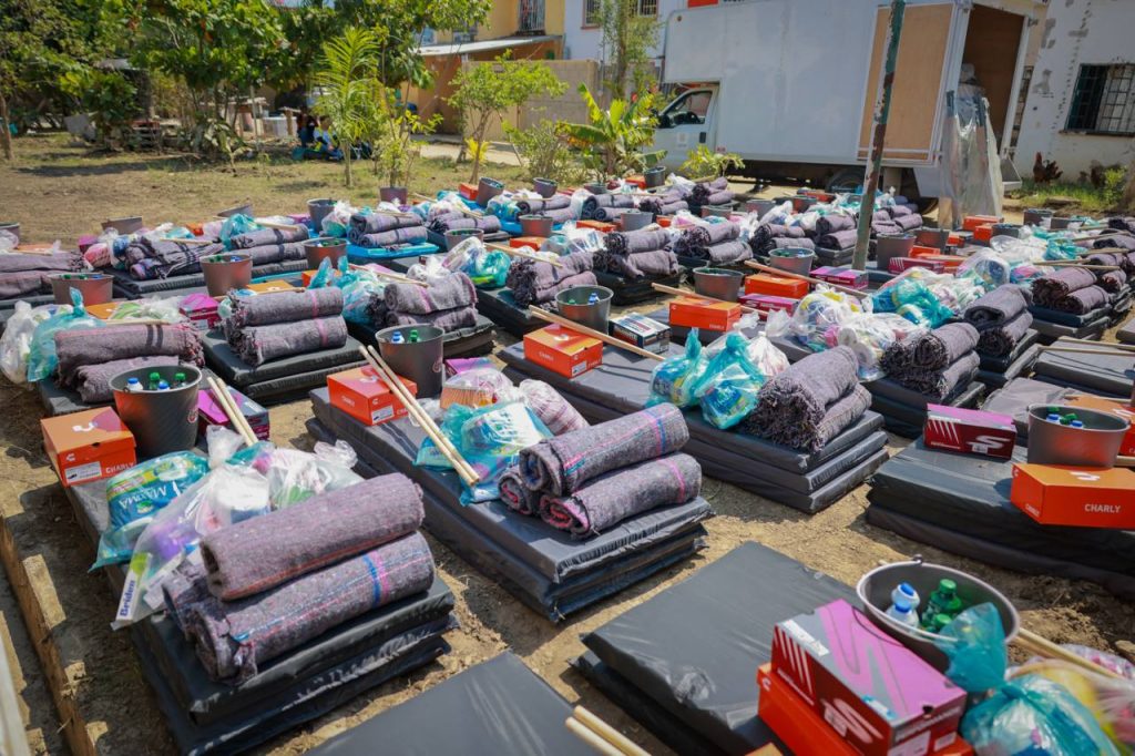 En su encuentro con los colonos, la gobernadora entregó paquetes de limpieza para los hogares, de aseo personal, cobertores, colchonetas y zapatos, entre otros; además señaló que, como parte de esta coordinación de esfuerzos, se realizó el retiro de más de 860 toneladas de tierra, logrando nuevamente el acceso a las calles de este centro poblacional y anunció que se trabajará en el restablecimiento de las luminarias en el acceso principal. De igual manera, se otorgaron paquetes de herramientas para que las Brigadas Vecinales sigan dando atención a la limpieza, se instaló un módulo de atención con Brigada Médica, mediante la cual se dan consultas, se realizan curaciones y se entrega medicamento a la población.