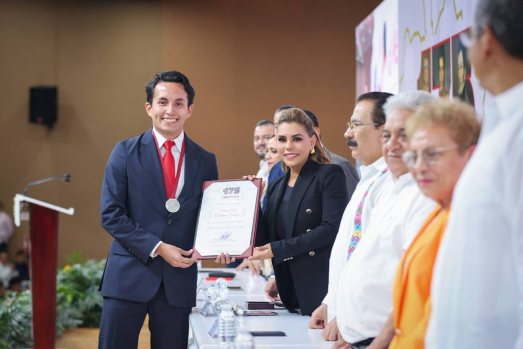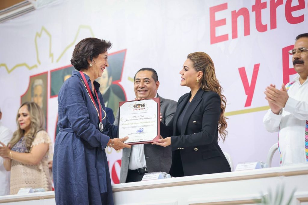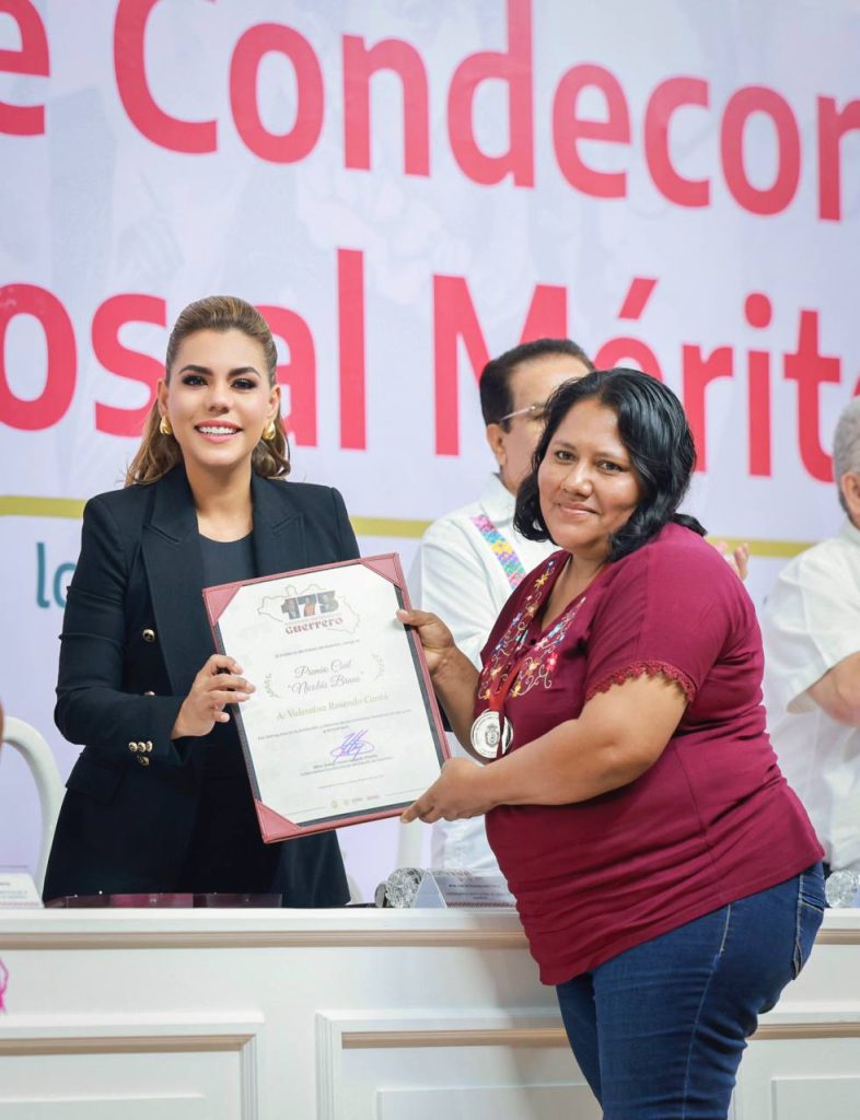 En el Auditorio José Joaquín de Herrera en Chilpancingo, la mandataria estatal otorgó tres condecoraciones estatales y 12 premios al Mérito Civil, a un total de 15 guerrerenses por su espíritu solidario, su trabajo excepcional y destacada contribución para el progreso, desarrollo y bienestar de Guerrero.