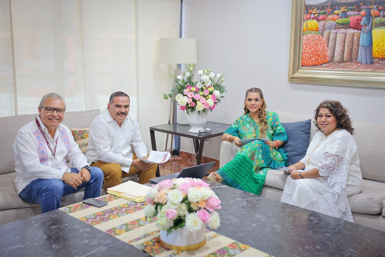 La mandataria estatal se reunió en su despacho con Ricardo Alarcón, director general del Centro SICT Guerrero; Hermilio Armas Moreno, director de Control y Seguimiento de Caminos Rurales y Alimentadores de la SICT y la secretaria de Desarrollo Urbano, Obras Públicas y Ordenamiento Territorial de Guerrero, Irene Jiménez Montiel.