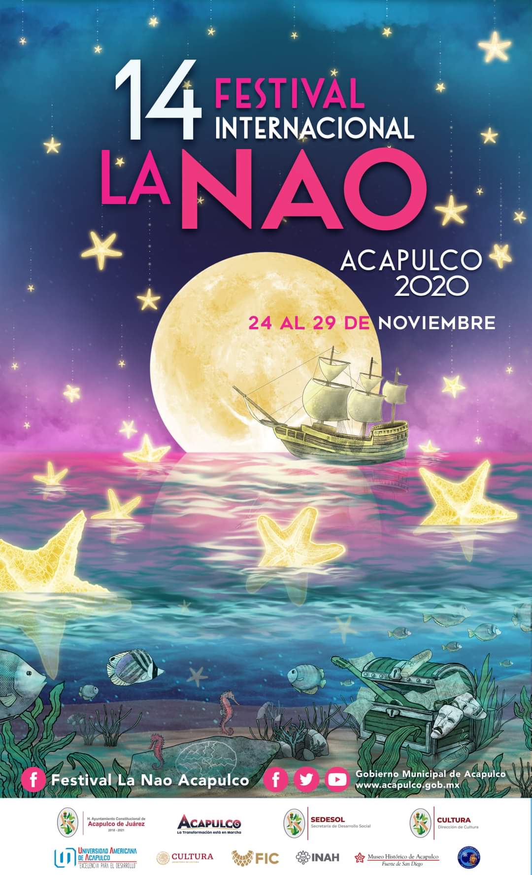 Acapulco, Gro., 10 de noviembre de 2020.- El XIV Festival Internacional La Nao Acapulco 2020, en su modalidad virtual, será un foro de proyección para artistas locales, quienes han sido incluidos en apoyo para hacer frente a la crisis económica generada por la pandemia de COVID-19.