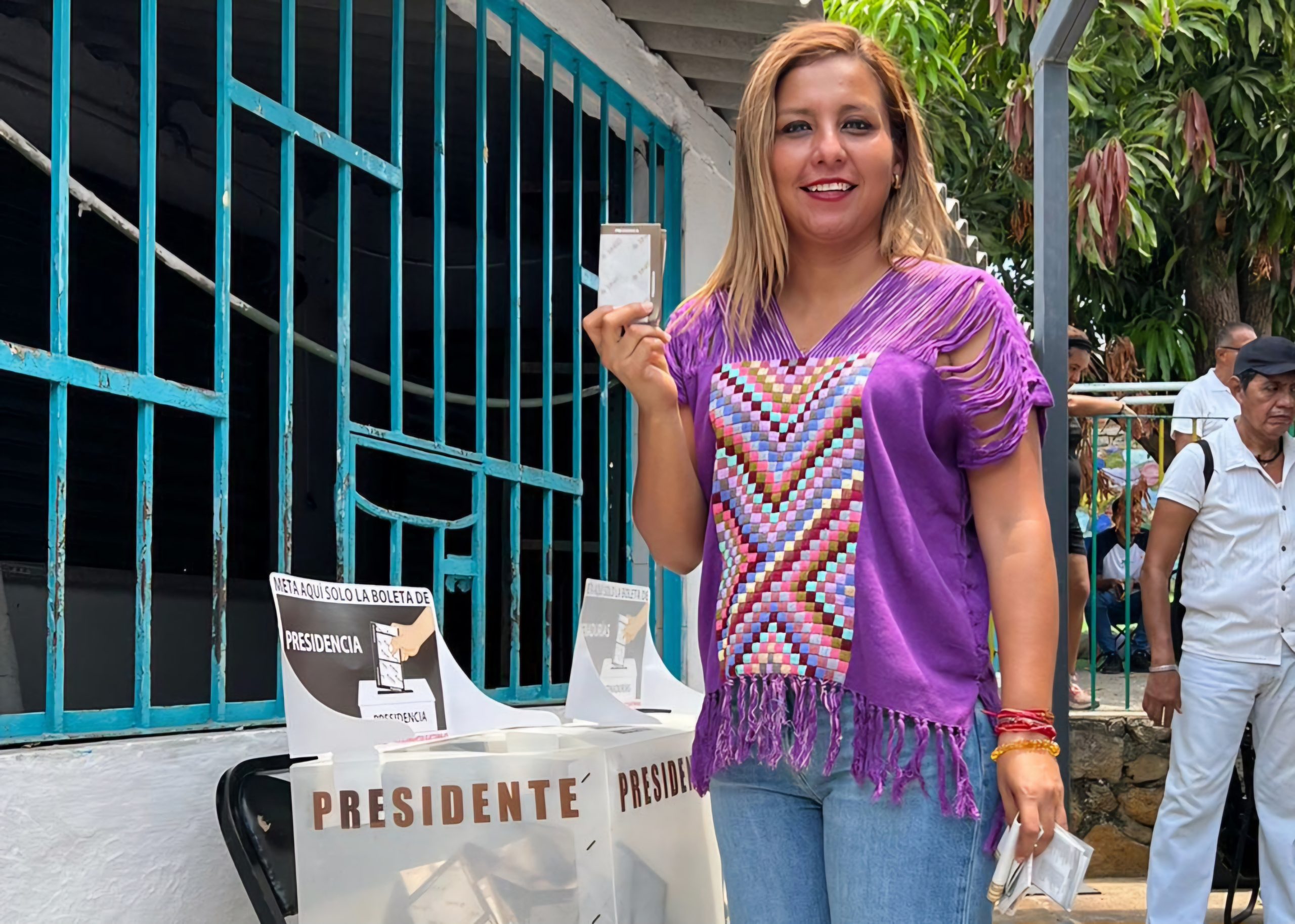 Acapulco, 02 de junio de 2024. La candidata a diputada local por el distrito 06, de la coalición Sigamos Haciendo Historia, Violeta Martínez Pacheco, expresó que la participación ciudadana expresada en las urnas este domingo es el principal logro de la democracia.