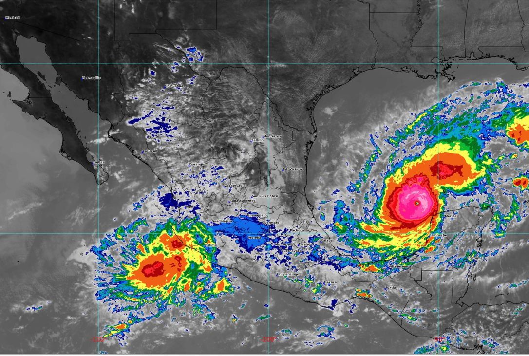 La mañana de este lunes en el Golfo de México, el huracán “Milton” alcanzó la categoría cinco en la escala Saffir-Simpson, localizándose a 160 kilómetros al Noroeste de Celestún y a 200 kilómetros al Oeste de Progreso, Yucatán, presentando vientos máximos sostenidos de 255 kilómetros por hora, con rachas de 315 kilómetros por hora, siguiendo su desplazamiento hacia el este-sureste a 15 kilómetros por hora.