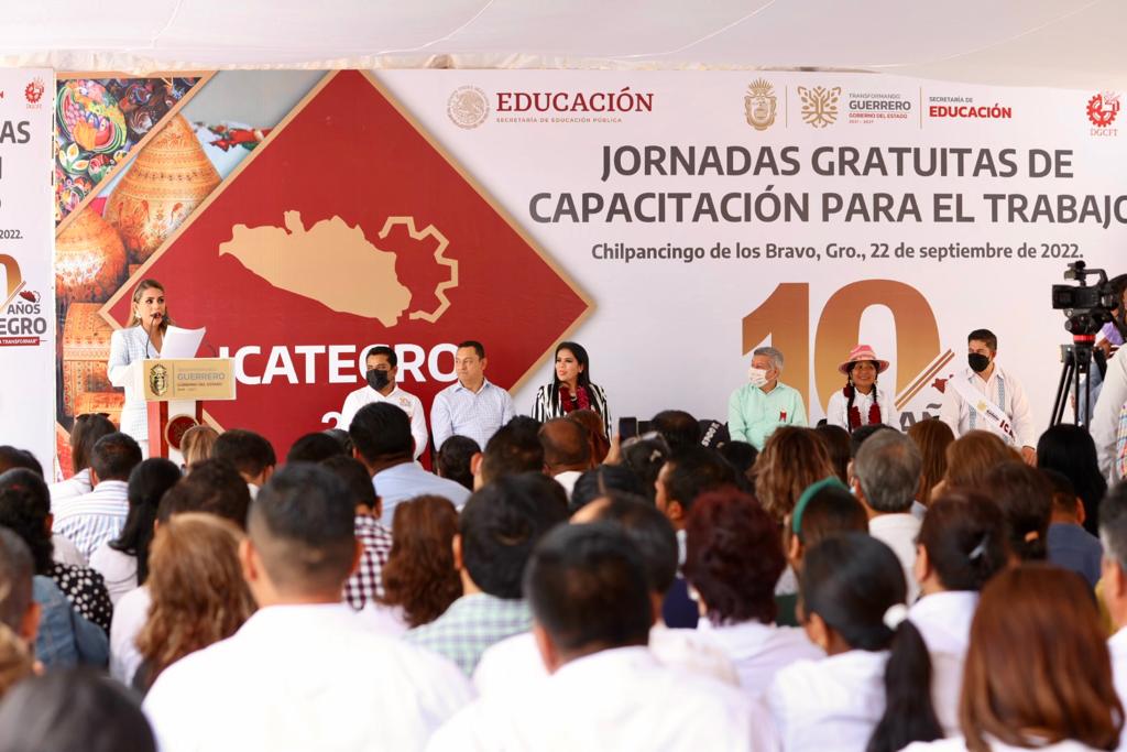 Chilpancingo, Gro., 22 de septiembre del 2022. – “Las verdaderas transformaciones se logran garantizando el empleo, generando condiciones de crecimiento y de desarrollo”, afirmó la gobernadora Evelyn Salgado Pineda al celebrar el Décimo Aniversario del Instituto de Capacitación para el Trabajo en el Estado de Guerrero (ICATEGRO), que ha logrado capacitar a más de 26 mil guerrerenses en actividades productivas durante este 2022, de los cuales, el 85 por ciento de esta matrícula son mujeres de todas las regiones de la entidad.