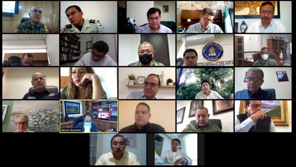 Estuvieron presentes en la reunión virtual, el comandante de la Octava Región Naval, Francisco Limas López, el comandante de la Novena Región Militar, Miguel Hurtado Ochoa, el delegado federal en Guerrero, Pablo Amílcar Sandoval Ballesteros, el comandante de la 27 Zona Militar, Eufemio Ibarra Flores, el coordinador estatal de la Guardia Nacional, Antonio Ramos Argüello, el secretario General de Gobierno, Florencio Salazar Adame, el presidente de Coparmex Chilpancingo, Joel Moreno Temelo, el presidente de la Comisión Estatal de Derechos Humanos, Ramón Navarrete Magdaleno, entre otras autoridades civiles y militares.