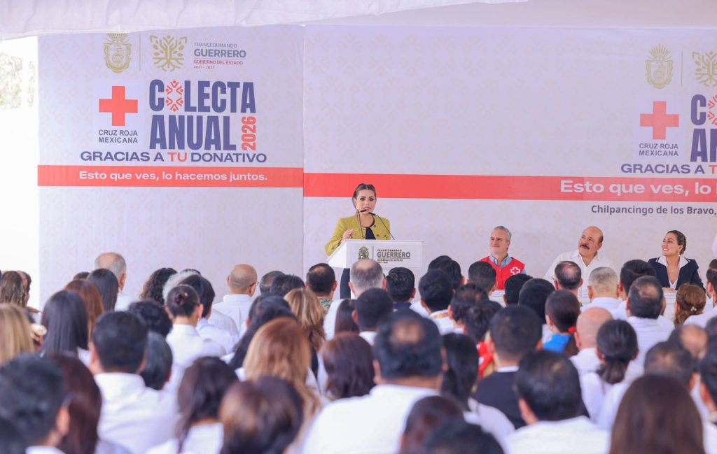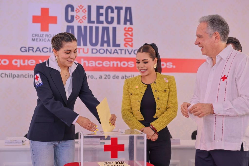 Chilpancingo, Gro., 20 de abril de 2026.– La gobernadora Evelyn Salgado Pineda encabezó el arranque en Guerrero de la Colecta Anual 2026 de la Cruz Roja Mexicana, acompañada por el presidente nacional de la institución, Eduardo de Agüero Le Duc, y la presidenta del DIF estatal, Liz Salgado Pineda.