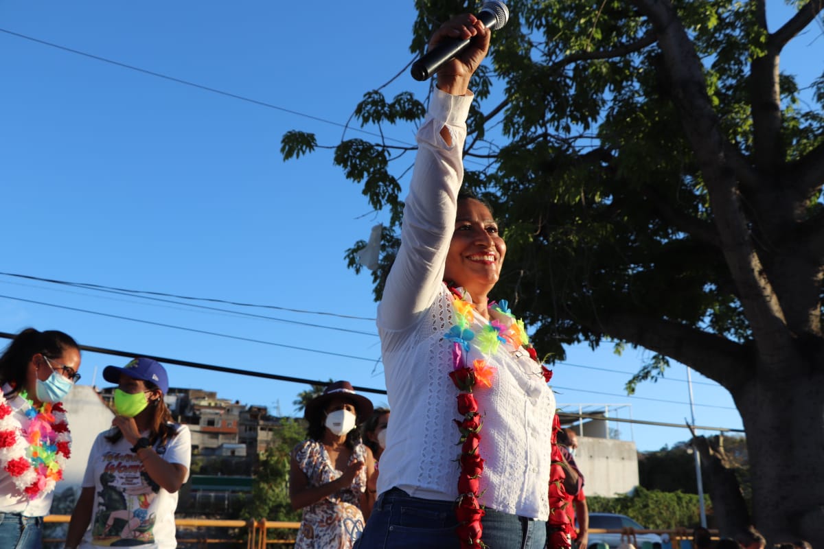 Acapulco,Gro., a 04 de mayo del 2021.- La tarde de este lunes, la candidata a la alcaldía de Acapulco por MORENA, Abelina López Rodríguez fue recibida con el arropo de los habitantes del barrio de La Fabrica, con quienes entabló el compromiso de llevar un proyecto que mejore las condiciones de los lavaderos de La Fabrica.