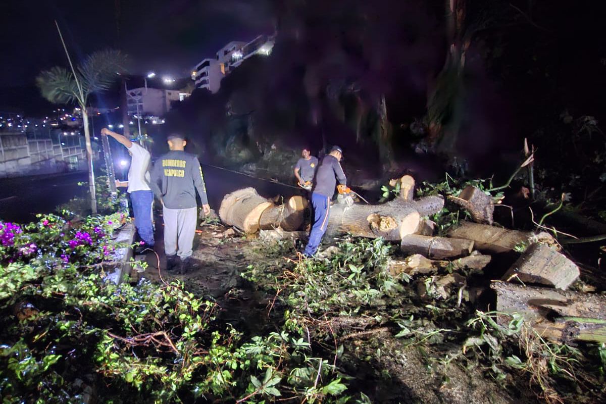 De acuerdo con un comunicado, personal operativo de la Coordinación General de Protección Civil y Bomberos de Acapulco desplegó personal para retirar un árbol colapsado sobre la avenida Escénica.
