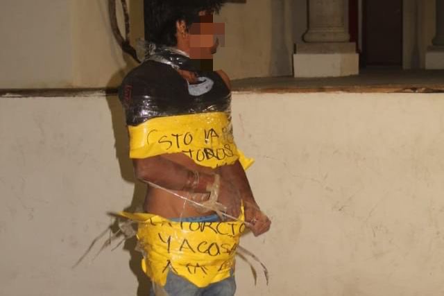 A ambos sujetos se les había colocado una cartulina de color fluorescente cuyo contenido no fue revelado por la autoridad.