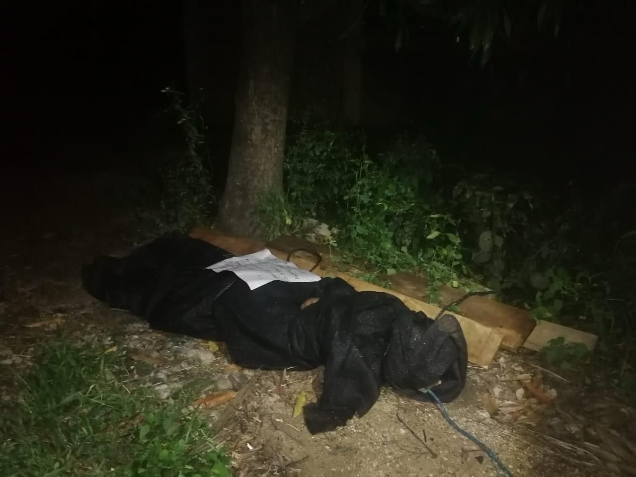 El cuerpo estaba envuelto en una maya color negra y tenía un mensaje, cuyo contenido no fue revelado por la autoridad.